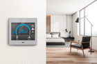 Z35 v3 by Zennio is able to contain up to 56 controls/indicators, distributed in up to 7 pages with a navigation menu. A screensaver with date, time and/or temperature is set when the touch panel is not in use and the menu is shown automatically when the user approaches.